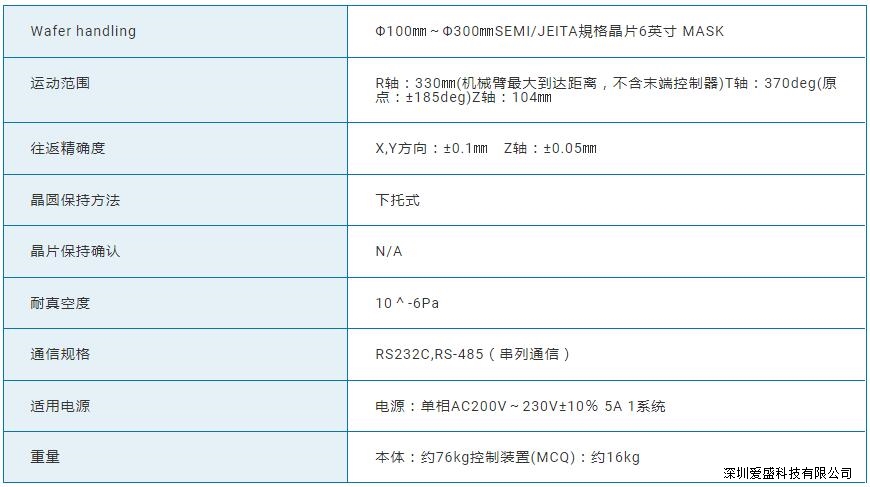 实现了低震动・低噪音,可以支持次世代半导体制造装置。 产品特点 全轴采用伺服电机,根据独自的构造,支持10^-6Pa的真空环境。 关于末端执行器部,晶圆保持部的材质请另行咨询。 也可以提供无升降功能(Z轴)的机型。(请您咨询)。 采用分支构造,将双手掌的回旋半径控制在最小。 Specification 作者:admin