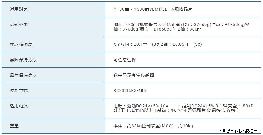 步进电机自由访问型智能机器人,本产品是对应Φ300mm晶圆的智能搬运机器人。 产品特点 可以有偿选择映射传感器。 最佳的软件将装置的活动范围控制在最小,内置型控制器为您节省了空间 Specification 作者:admin
